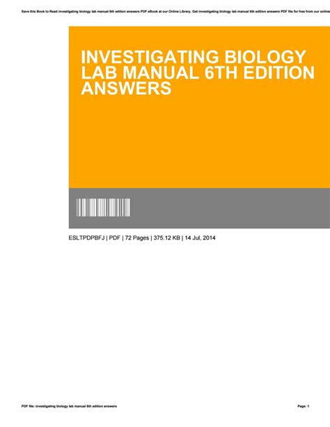 Download Investigating Biology Lab Manual 6th Edition Answers Reader