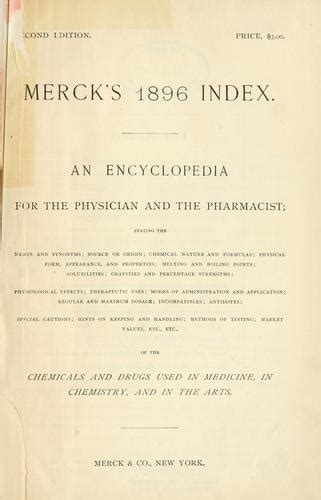 Read Online Merck's 1896 Index; An Encyclopedia for the Physician and the Pharmacist Epub By Click Button. Merck's 1896 Index; An Encyclopedia for the Physician and the Pharmacist it’s easy to recommend a new book category such as Novel, journal, comic, magazin, ect. You see it and you just know that the designer is also an author and understands the challenges involved with having a good book. You can easy klick for detailing book and you can read it online, even you can download it